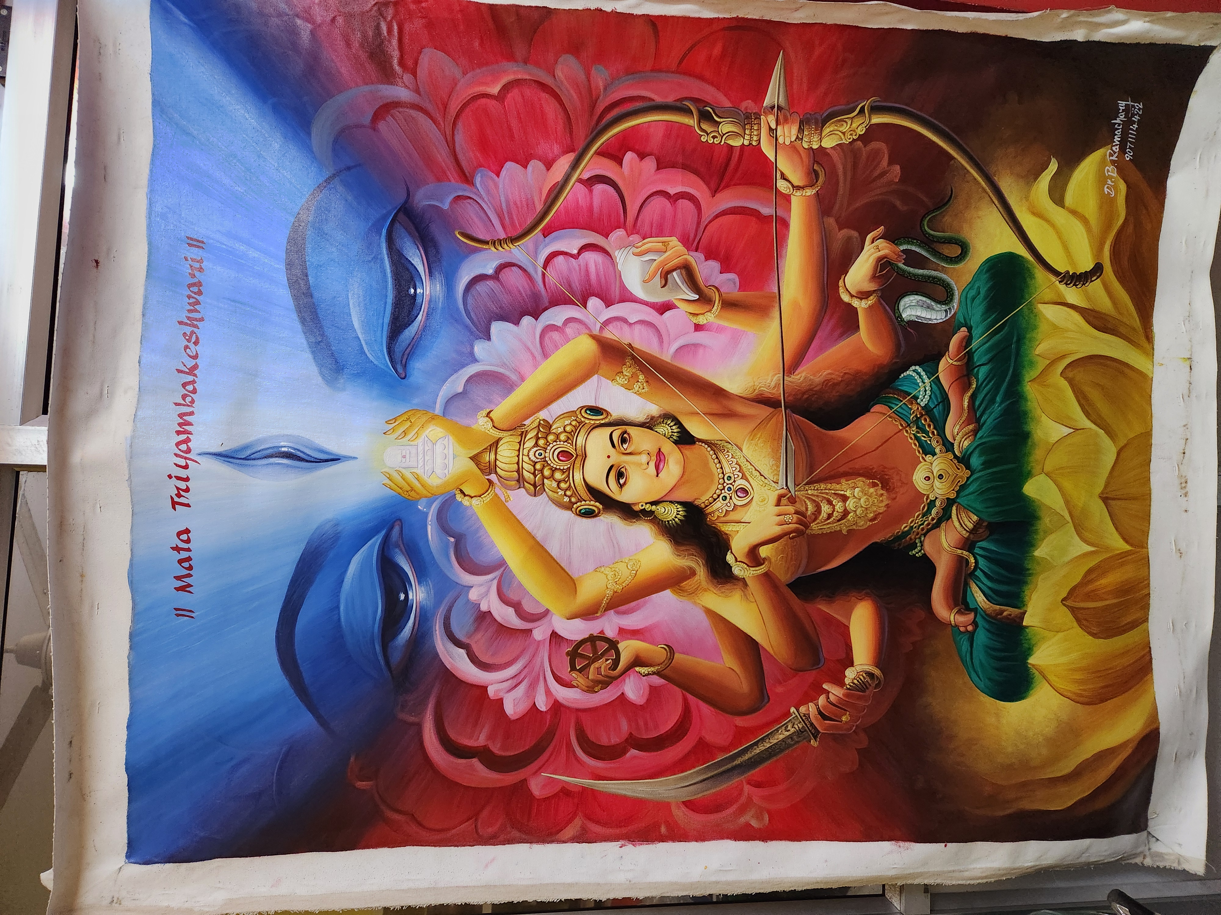 A selection of original oil and acrylic paintings on canvas by Dr. B. Ramachary, featuring artistic expressions of Indian tradition, nature, and spiritual harmony.
